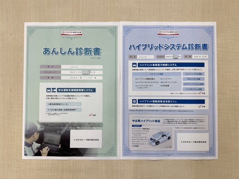 - 表示項目・方法・運用体制等について、自動車公正取引協議会の定める基準を満たした「トヨタU-Car品質評価制度」に基づき作成しております。