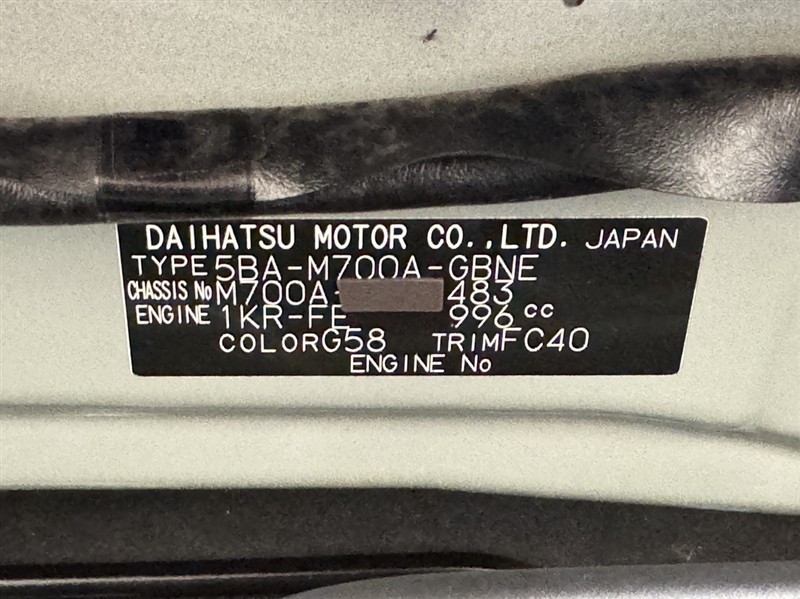 店舗管理ナンバー【332012455291】車台番号(下3桁)【483】