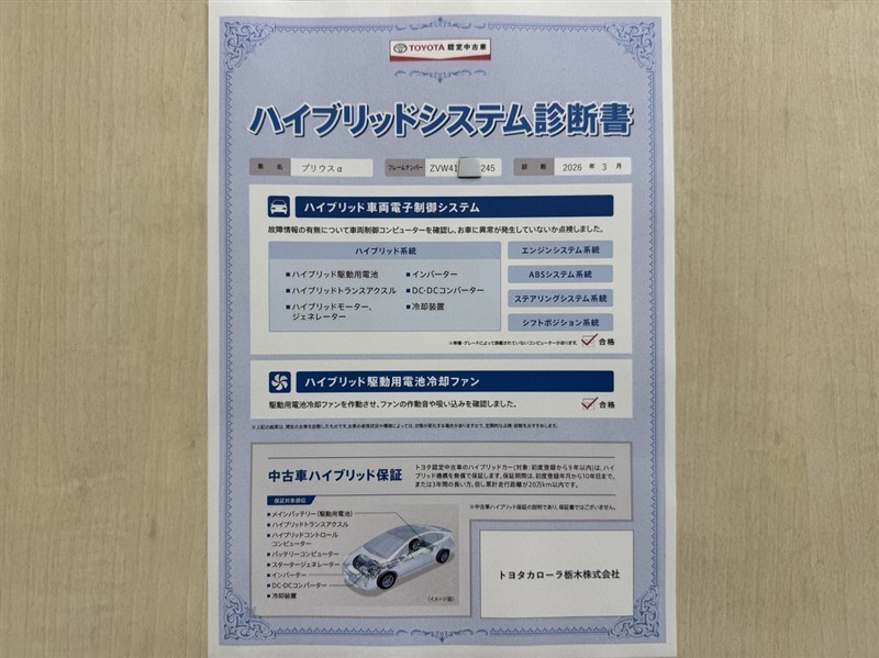| 保証内容※1 | 保証付:ロングラン保証1年<走行距離無制限> +ハイブリッド保証<保証期間は初度登録年月から10年目まで、もしくは3年間のいずれか長い方。但し走行距離20万キロまで> |