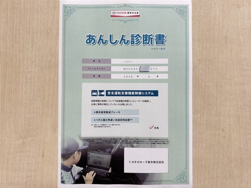 - 「定期点検整備なし(要整備箇所あり)」の場合、整備箇所につきましては、販売店へお問合せください。
