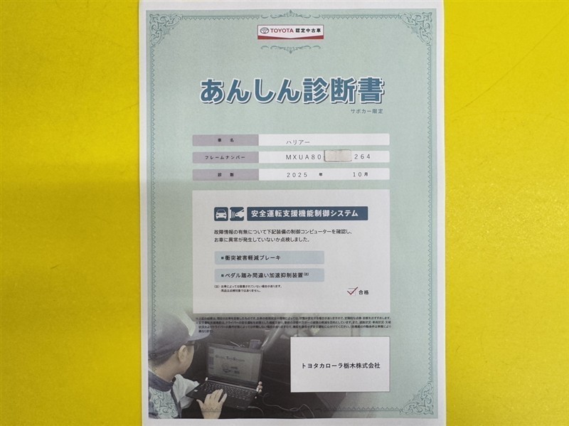 検査には厳正を期しておりますが、保証したものではございませんのでその旨ご了承ください。