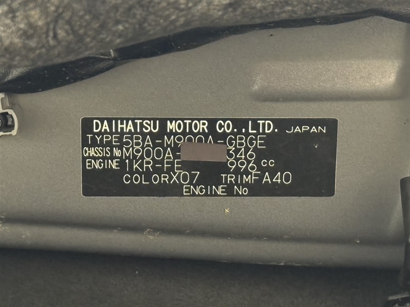 店舗管理ナンバー【332012940475】車台番号(下3桁)【346】
