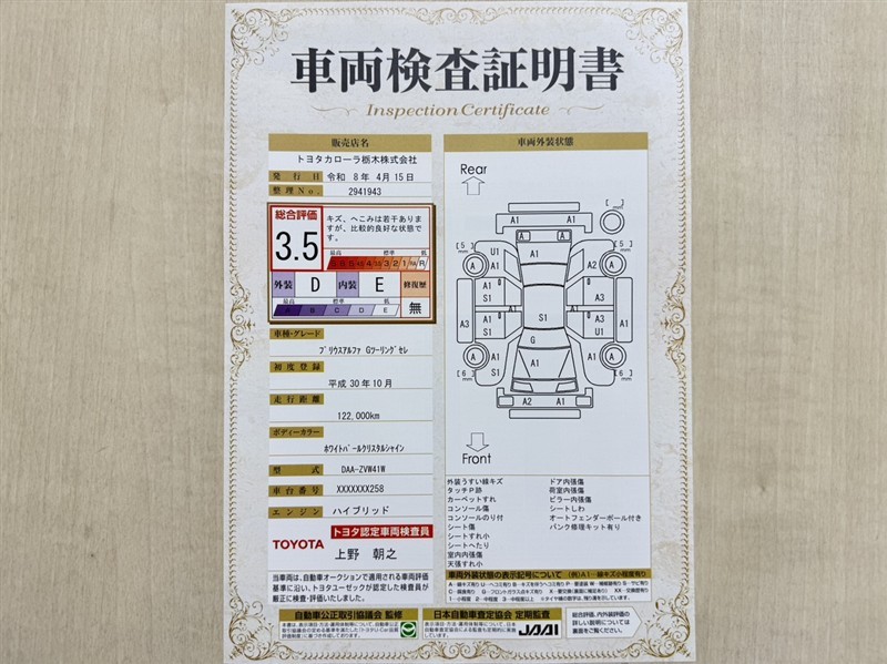 | ボディカラー | ホワイトパールクリスタルシャイン | 修復歴 | なし |