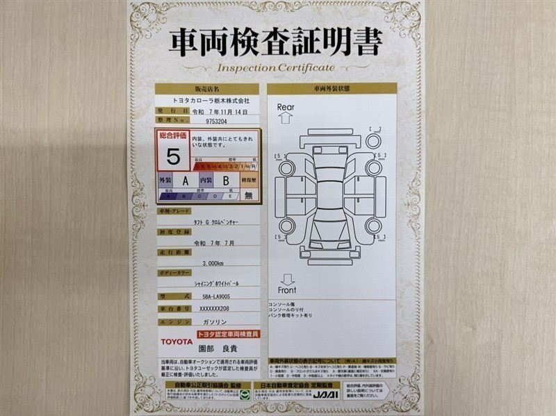 | 走行距離 | 3,000km | 修復歴 | なし |