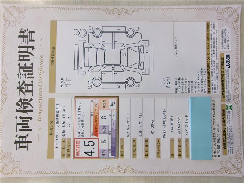 本ページに掲載された評価は、車両検査実施時の車両状態を示したものです。