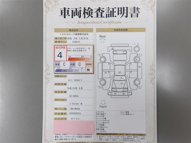 詳細及び現状の車両状態につきましては、店舗スタッフまでお尋ねください。 - 注2)上記と同様の評価点・状態表を「車両検査証明書」として店舗の展示車両に搭載しております。