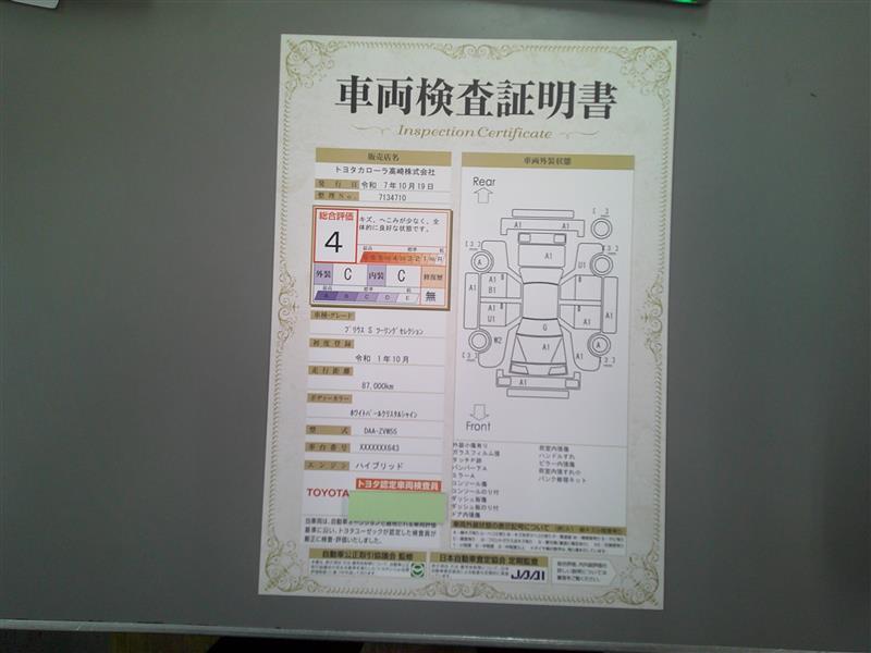 詳細及び現状の車両状態につきましては、店舗スタッフまでお尋ねください。 - 注2)上記と同様の評価点・状態表を「車両検査証明書」として店舗の展示車両に搭載しております。