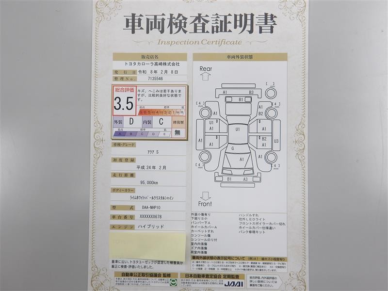 本ページに掲載された評価は、車両検査実施時の車両状態を示したものです。