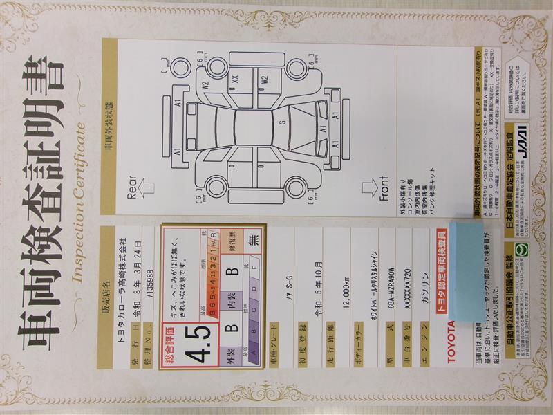 | ボディカラー | ホワイトパールクリスタルシャイン | 修復歴 | なし |