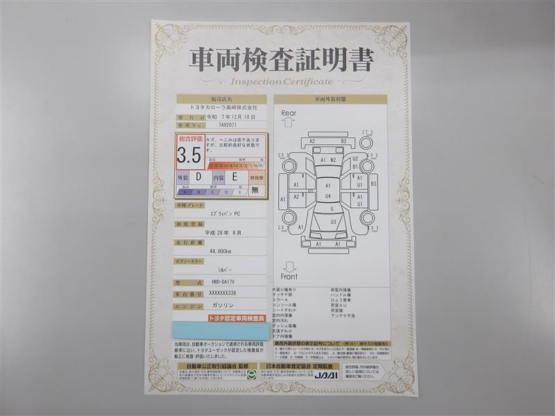 詳細及び現状の車両状態につきましては、店舗スタッフまでお尋ねください。 - 注2)上記と同様の評価点・状態表を「車両検査証明書」として店舗の展示車両に搭載しております。