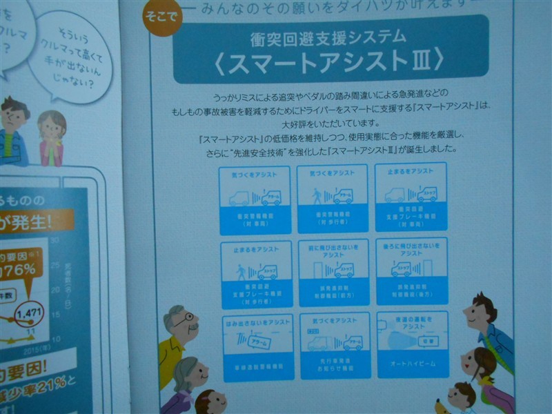 | 衝突被害軽減ブレーキ | スマートアシストの 衝突回避支援ブレーキ機能 (対車両・歩行者) | ペダル踏み間違い 急発進抑制装置 | インテリジェントクリアランスソナー・ スマートアシスト |