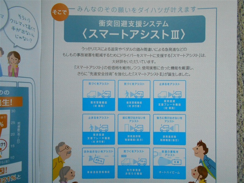 | 衝突被害軽減ブレーキ | スマートアシストの 衝突回避支援ブレーキ機能 (対車両・歩行者) | ペダル踏み間違い 急発進抑制装置 | インテリジェントクリアランスソナー・ スマートアシスト |