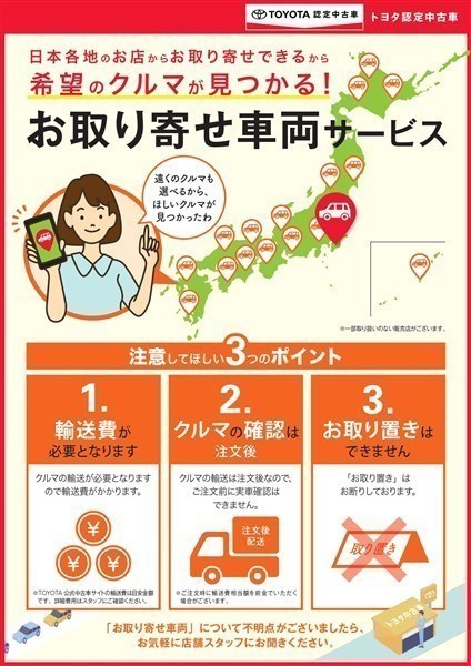 - 「定期点検整備なし(要整備箇所あり)」の場合、整備箇所につきましては、販売店へお問合せください。