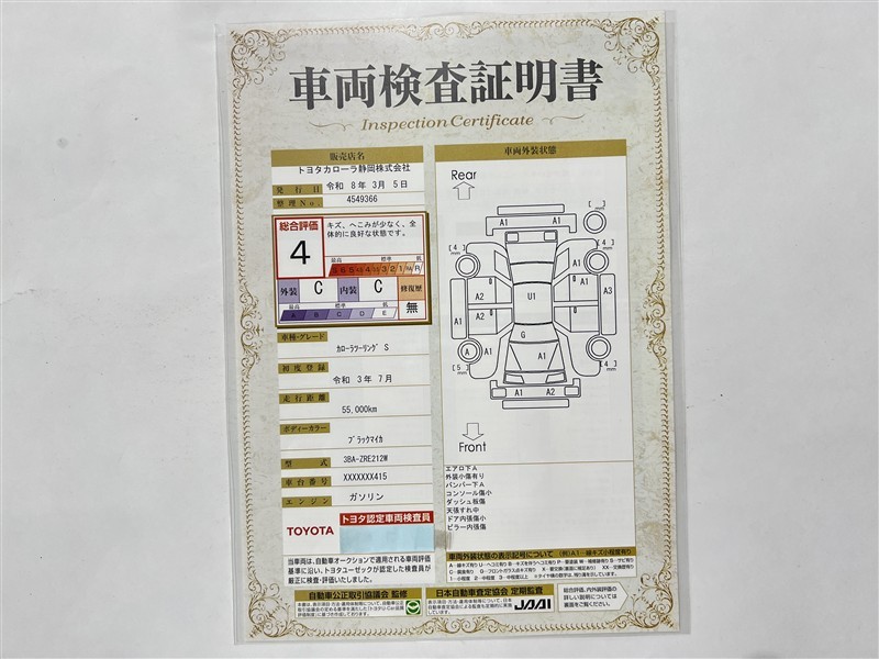 詳細及び現状の車両状態につきましては、店舗スタッフまでお尋ねください。 - 注2)上記と同様の評価点・状態表を「車両検査証明書」として店舗の展示車両に搭載しております。