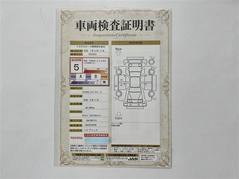 - 表示項目・方法・運用体制等について、自動車公正取引協議会の定める基準を満たした「トヨタU-Car品質評価制度」に基づき作成しております。