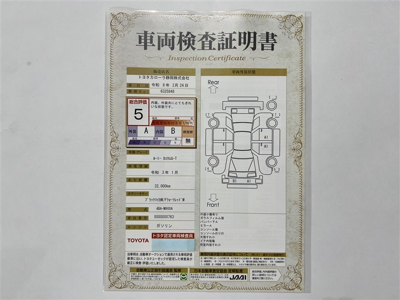 詳細及び現状の車両状態につきましては、店舗スタッフまでお尋ねください。 - 注2)上記と同様の評価点・状態表を「車両検査証明書」として店舗の展示車両に搭載しております。