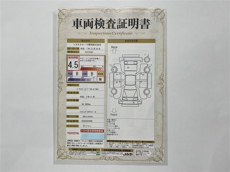 - 注1)本ページに掲載された評価は、車両検査実施時の車両状態を示したものです。