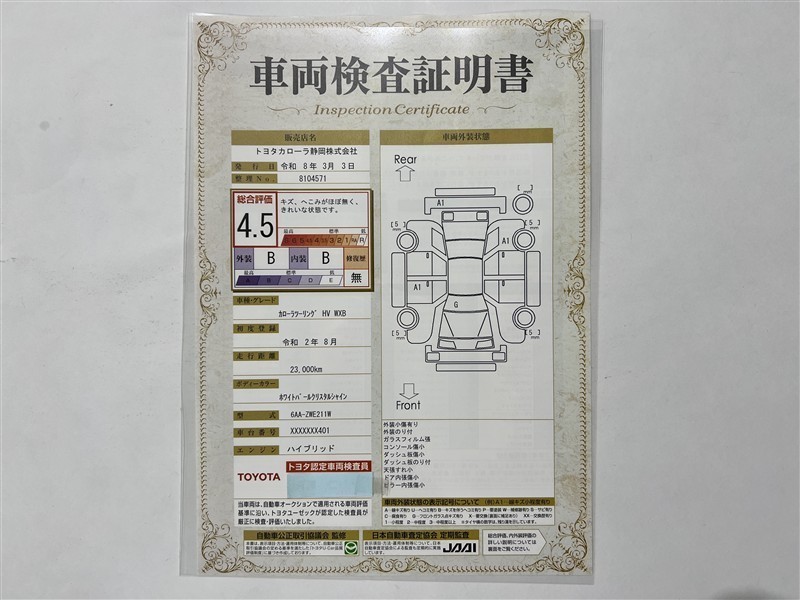 詳細及び現状の車両状態につきましては、店舗スタッフまでお尋ねください。 - 注2)上記と同様の評価点・状態表を「車両検査証明書」として店舗の展示車両に搭載しております。