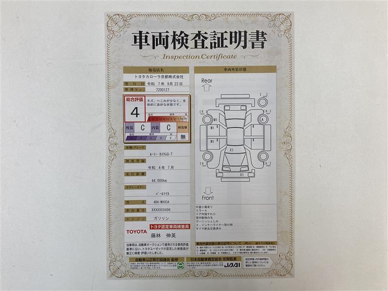 詳細及び現状の車両状態につきましては、店舗スタッフまでお尋ねください。 - 注2)上記と同様の評価点・状態表を「車両検査証明書」として店舗の展示車両に搭載しております。