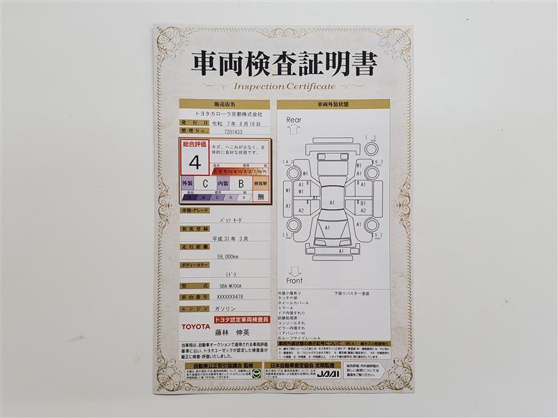詳細及び現状の車両状態につきましては、店舗スタッフまでお尋ねください。 - 注2)上記と同様の評価点・状態表を「車両検査証明書」として店舗の展示車両に搭載しております。
