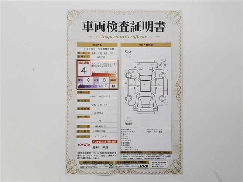 詳細及び現状の車両状態につきましては、店舗スタッフまでお尋ねください。 - 注2)上記と同様の評価点・状態表を「車両検査証明書」として店舗の展示車両に搭載しております。