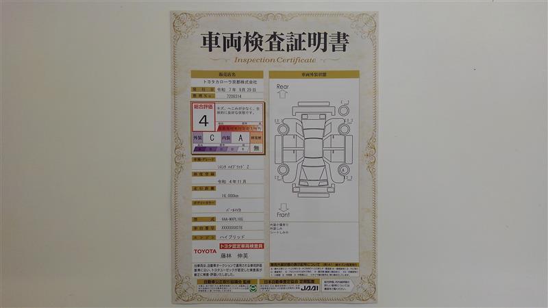 詳細及び現状の車両状態につきましては、店舗スタッフまでお尋ねください。 - 注2)上記と同様の評価点・状態表を「車両検査証明書」として店舗の展示車両に搭載しております。