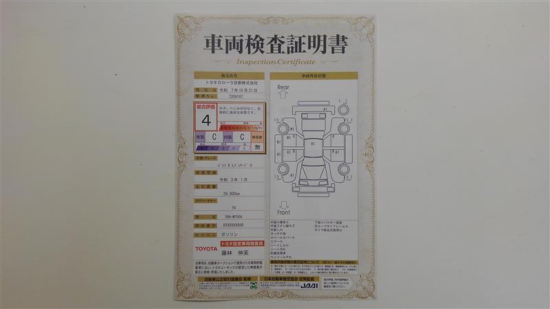 詳細及び現状の車両状態につきましては、店舗スタッフまでお尋ねください。 - 注2)上記と同様の評価点・状態表を「車両検査証明書」として店舗の展示車両に搭載しております。