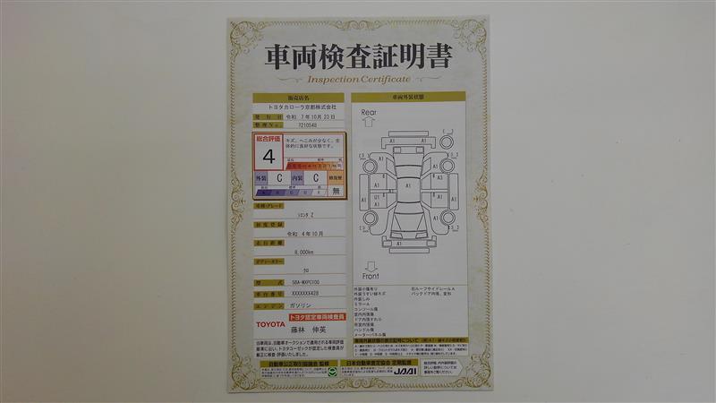 詳細及び現状の車両状態につきましては、店舗スタッフまでお尋ねください。 - 注2)上記と同様の評価点・状態表を「車両検査証明書」として店舗の展示車両に搭載しております。