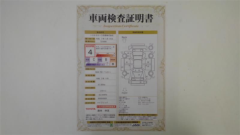 詳細及び現状の車両状態につきましては、店舗スタッフまでお尋ねください。 - 注2)上記と同様の評価点・状態表を「車両検査証明書」として店舗の展示車両に搭載しております。