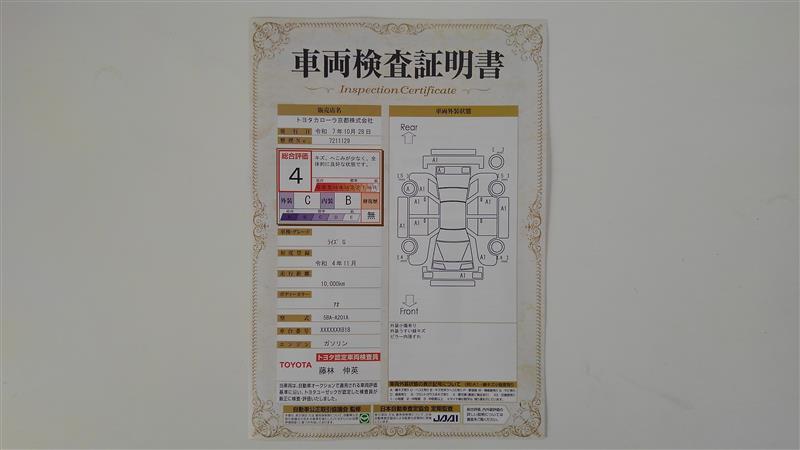詳細及び現状の車両状態につきましては、店舗スタッフまでお尋ねください。 - 注2)上記と同様の評価点・状態表を「車両検査証明書」として店舗の展示車両に搭載しております。