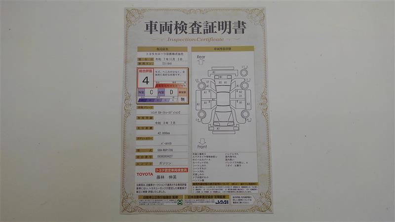 詳細及び現状の車両状態につきましては、店舗スタッフまでお尋ねください。 - 注2)上記と同様の評価点・状態表を「車両検査証明書」として店舗の展示車両に搭載しております。