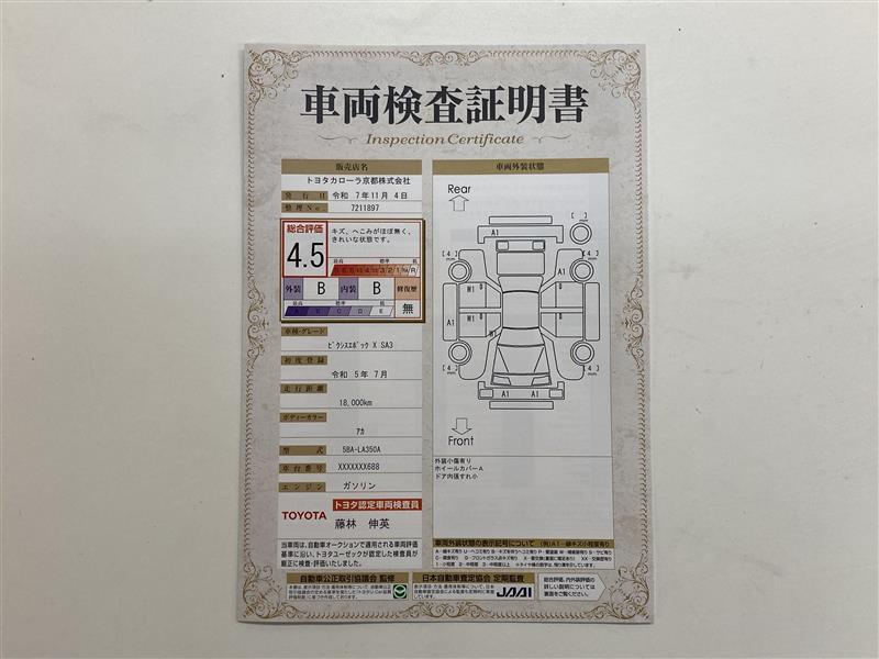 詳細及び現状の車両状態につきましては、店舗スタッフまでお尋ねください。 - 注2)上記と同様の評価点・状態表を「車両検査証明書」として店舗の展示車両に搭載しております。