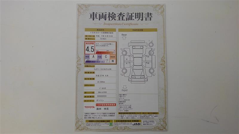 詳細及び現状の車両状態につきましては、店舗スタッフまでお尋ねください。 - 注2)上記と同様の評価点・状態表を「車両検査証明書」として店舗の展示車両に搭載しております。