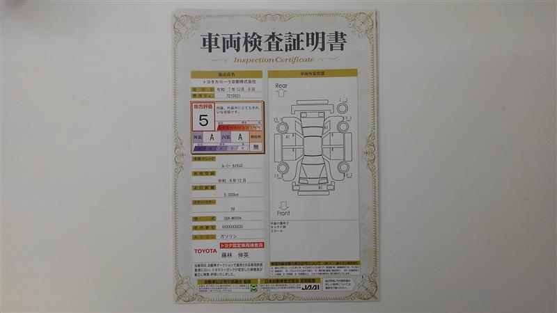 詳細及び現状の車両状態につきましては、店舗スタッフまでお尋ねください。 - 注2)上記と同様の評価点・状態表を「車両検査証明書」として店舗の展示車両に搭載しております。