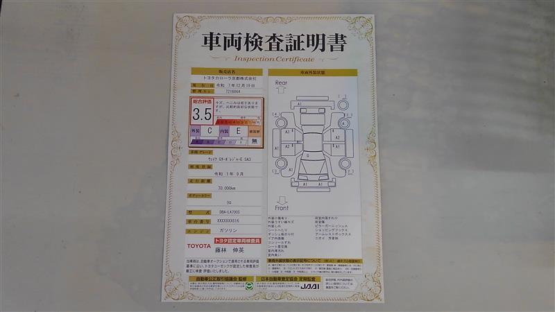 詳細及び現状の車両状態につきましては、店舗スタッフまでお尋ねください。 - 注2)上記と同様の評価点・状態表を「車両検査証明書」として店舗の展示車両に搭載しております。