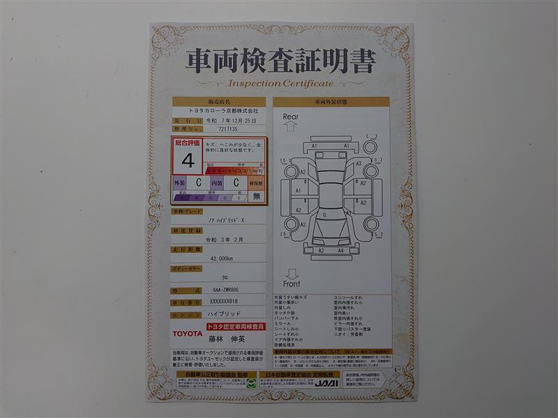 | 保証内容※1 | 保証付:ロングラン保証1年<走行距離無制限> +ハイブリッド保証<保証期間は初度登録年月から10年目まで、もしくは3年間のいずれか長い方。但し走行距離20万キロまで> |