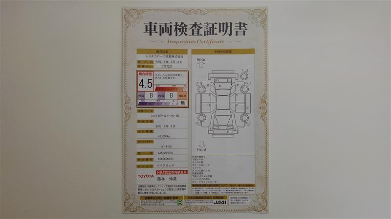詳細及び現状の車両状態につきましては、店舗スタッフまでお尋ねください。 - 注2)上記と同様の評価点・状態表を「車両検査証明書」として店舗の展示車両に搭載しております。