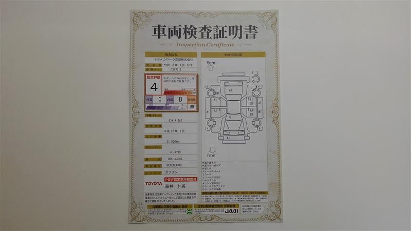 詳細及び現状の車両状態につきましては、店舗スタッフまでお尋ねください。 - 注2)上記と同様の評価点・状態表を「車両検査証明書」として店舗の展示車両に搭載しております。