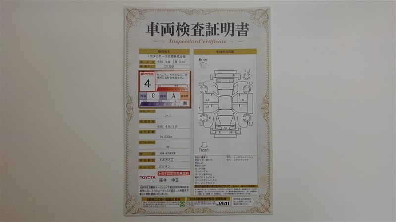 詳細及び現状の車両状態につきましては、店舗スタッフまでお尋ねください。 - 注2)上記と同様の評価点・状態表を「車両検査証明書」として店舗の展示車両に搭載しております。