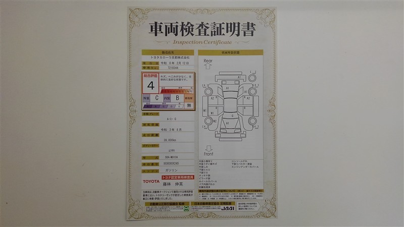 詳細及び現状の車両状態につきましては、店舗スタッフまでお尋ねください。 - 注2)上記と同様の評価点・状態表を「車両検査証明書」として店舗の展示車両に搭載しております。