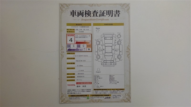 詳細及び現状の車両状態につきましては、店舗スタッフまでお尋ねください。 - 注2)上記と同様の評価点・状態表を「車両検査証明書」として店舗の展示車両に搭載しております。