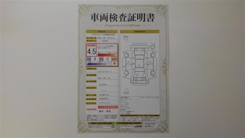 | 保証内容※1 | 保証付:ロングラン保証1年<走行距離無制限> +ハイブリッド保証<保証期間は初度登録年月から10年目まで、もしくは3年間のいずれか長い方。但し走行距離20万キロまで> |