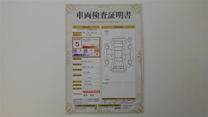 詳細及び現状の車両状態につきましては、店舗スタッフまでお尋ねください。 - 注2)上記と同様の評価点・状態表を「車両検査証明書」として店舗の展示車両に搭載しております。