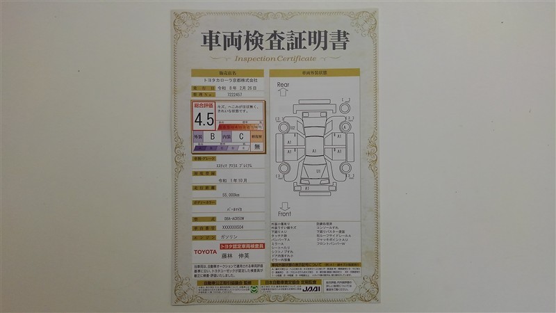 詳細及び現状の車両状態につきましては、店舗スタッフまでお尋ねください。 - 注2)上記と同様の評価点・状態表を「車両検査証明書」として店舗の展示車両に搭載しております。