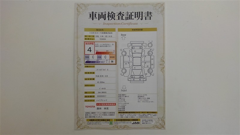 詳細及び現状の車両状態につきましては、店舗スタッフまでお尋ねください。 - 注2)上記と同様の評価点・状態表を「車両検査証明書」として店舗の展示車両に搭載しております。