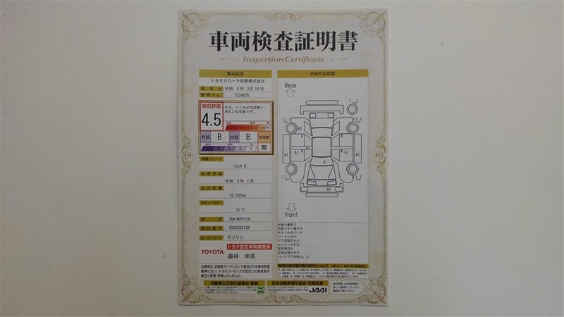 - 表示項目・方法・運用体制等について、自動車公正取引協議会の定める基準を満たした「トヨタU-Car品質評価制度」に基づき作成しております。