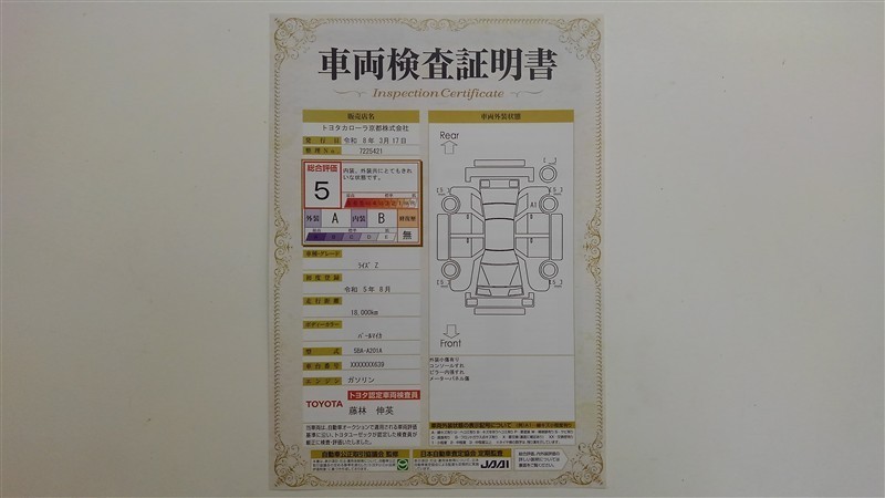 詳細及び現状の車両状態につきましては、店舗スタッフまでお尋ねください。 - 注2)上記と同様の評価点・状態表を「車両検査証明書」として店舗の展示車両に搭載しております。
