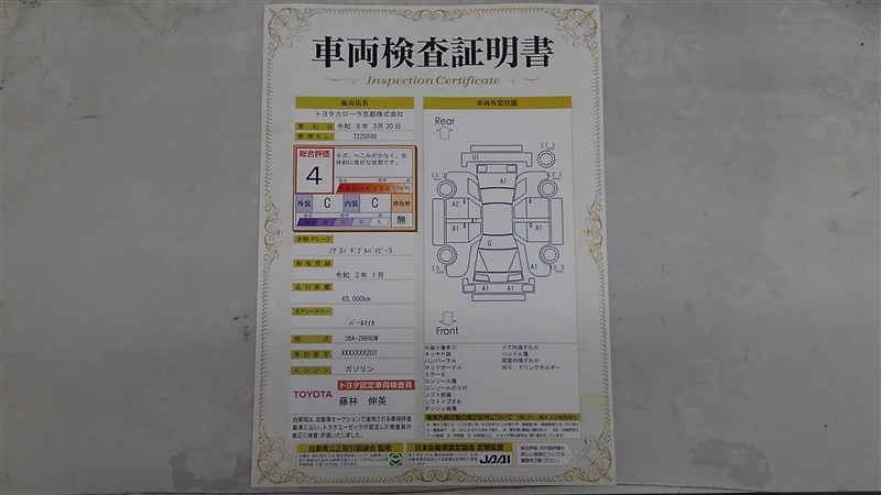 詳細及び現状の車両状態につきましては、店舗スタッフまでお尋ねください。 - 注2)上記と同様の評価点・状態表を「車両検査証明書」として店舗の展示車両に搭載しております。