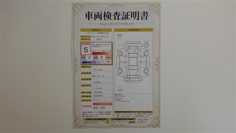 詳細及び現状の車両状態につきましては、店舗スタッフまでお尋ねください。 - 注2)上記と同様の評価点・状態表を「車両検査証明書」として店舗の展示車両に搭載しております。
