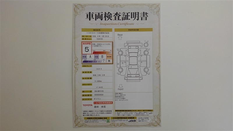 詳細及び現状の車両状態につきましては、店舗スタッフまでお尋ねください。 - 注2)上記と同様の評価点・状態表を「車両検査証明書」として店舗の展示車両に搭載しております。